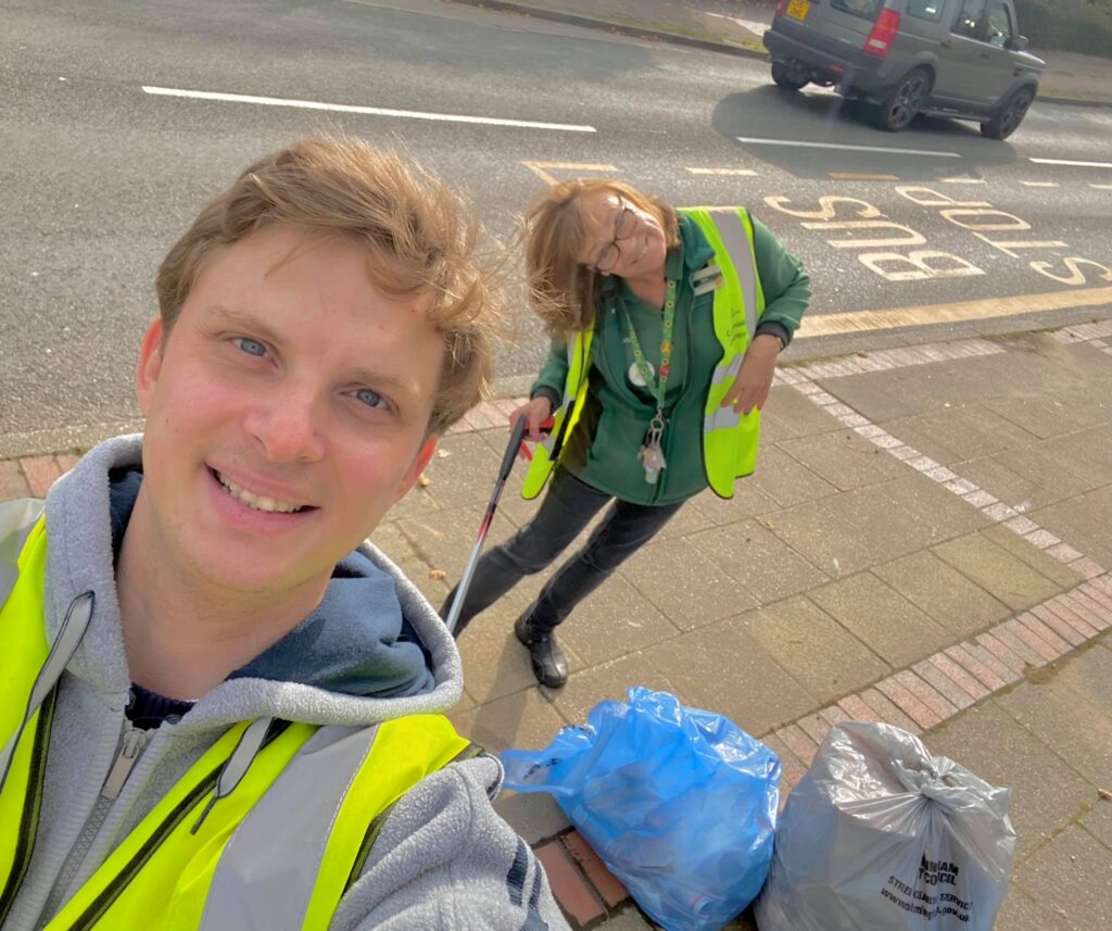 Cllr Simon Morrall joins B45 Winter Clean Up.