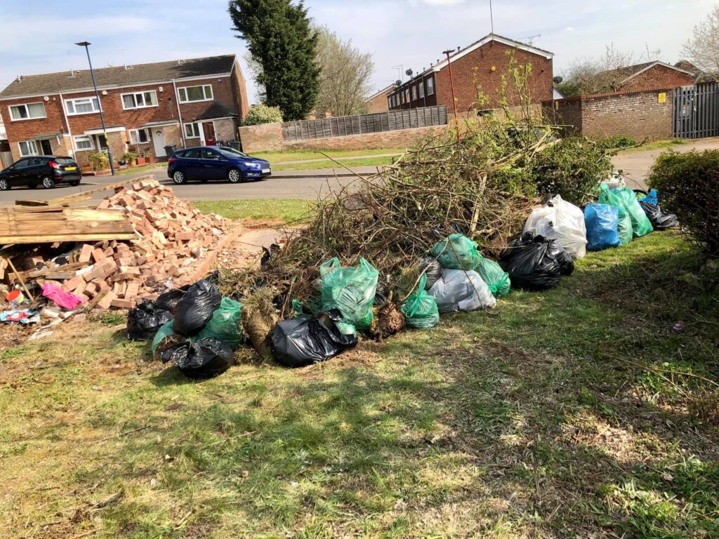 Today I joined the brilliant residents of Charnwood Close to clear all the rubbish and rubble from around the garages. Together, we collected well over 40 bags and a whole load of garden waste after four hours of work!