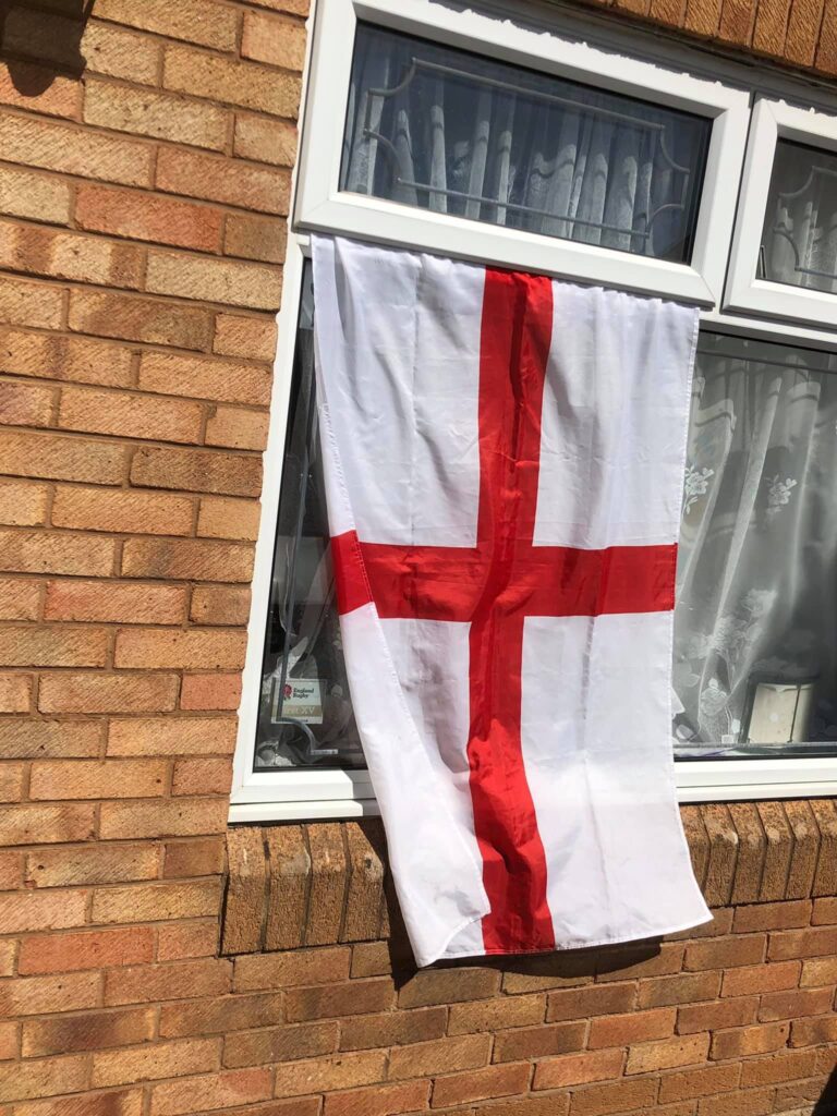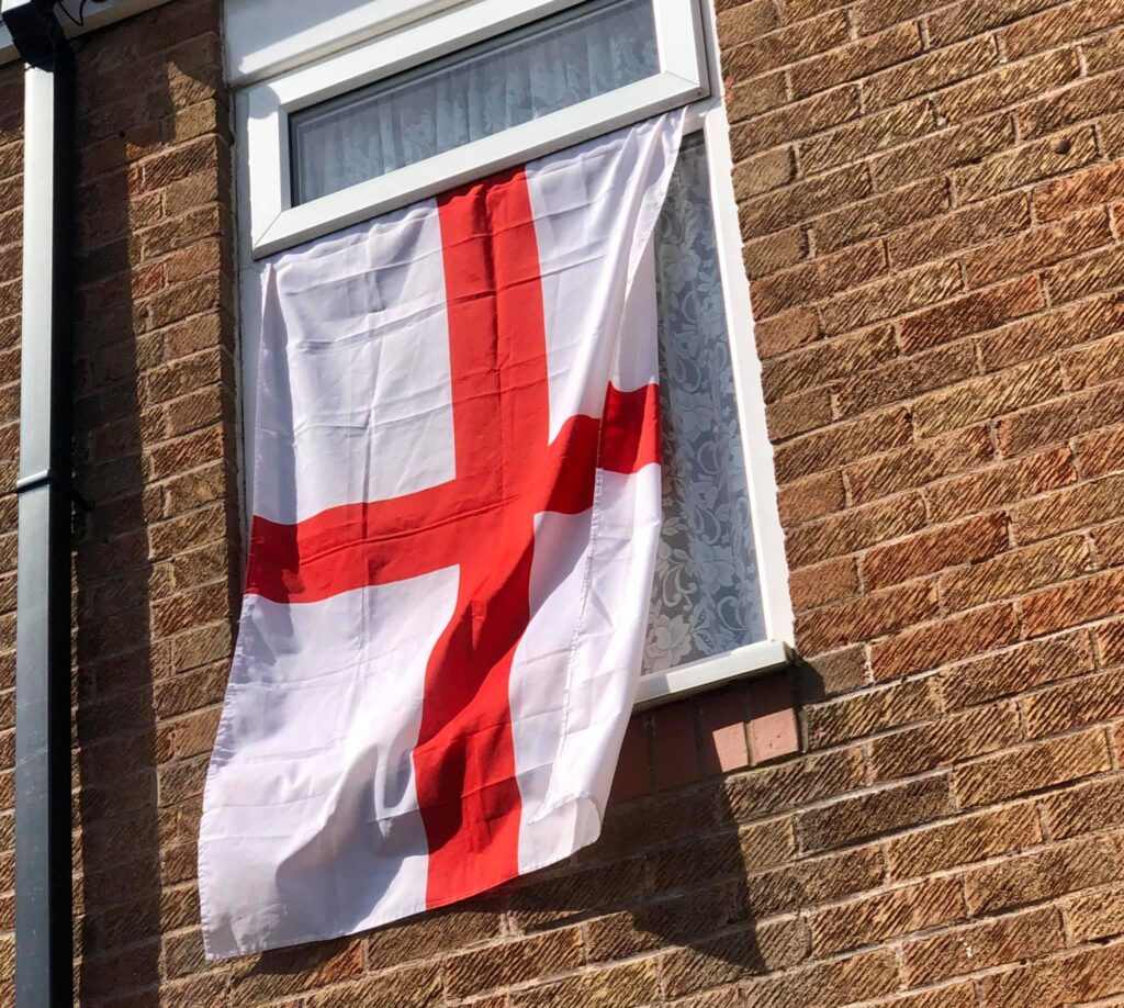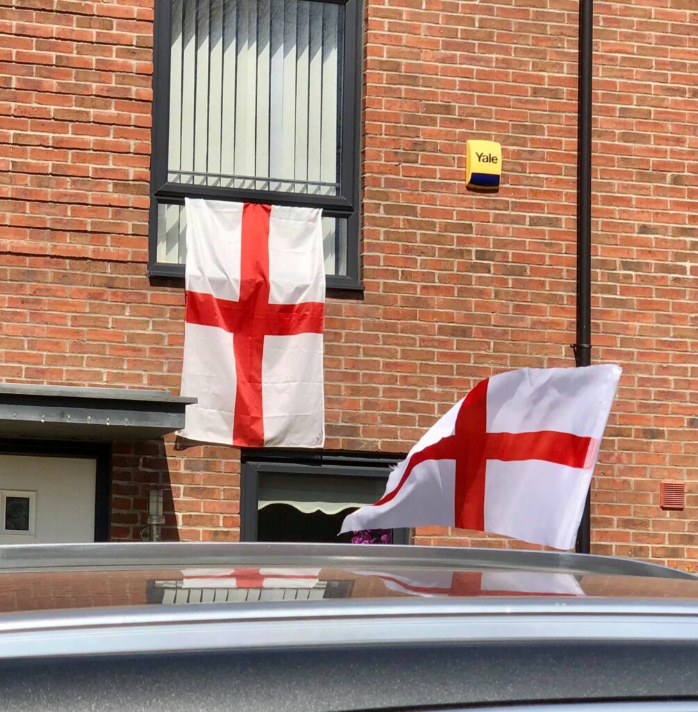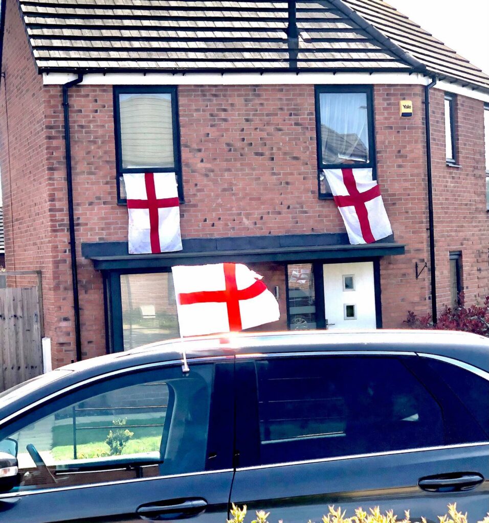 So I’ve sellotaped a flag to my aerial and I’m currently on patrol around Frankley taking photos of all the flags! Don’t be scared folks, be proud of England, fly those flags with pride!