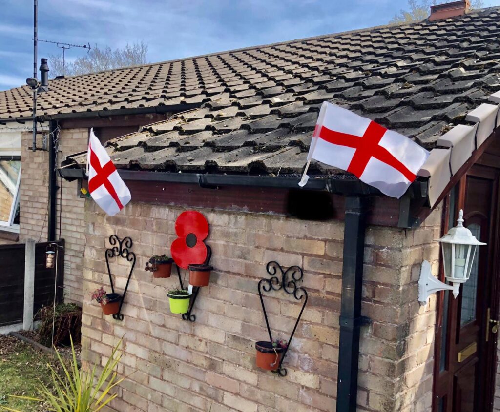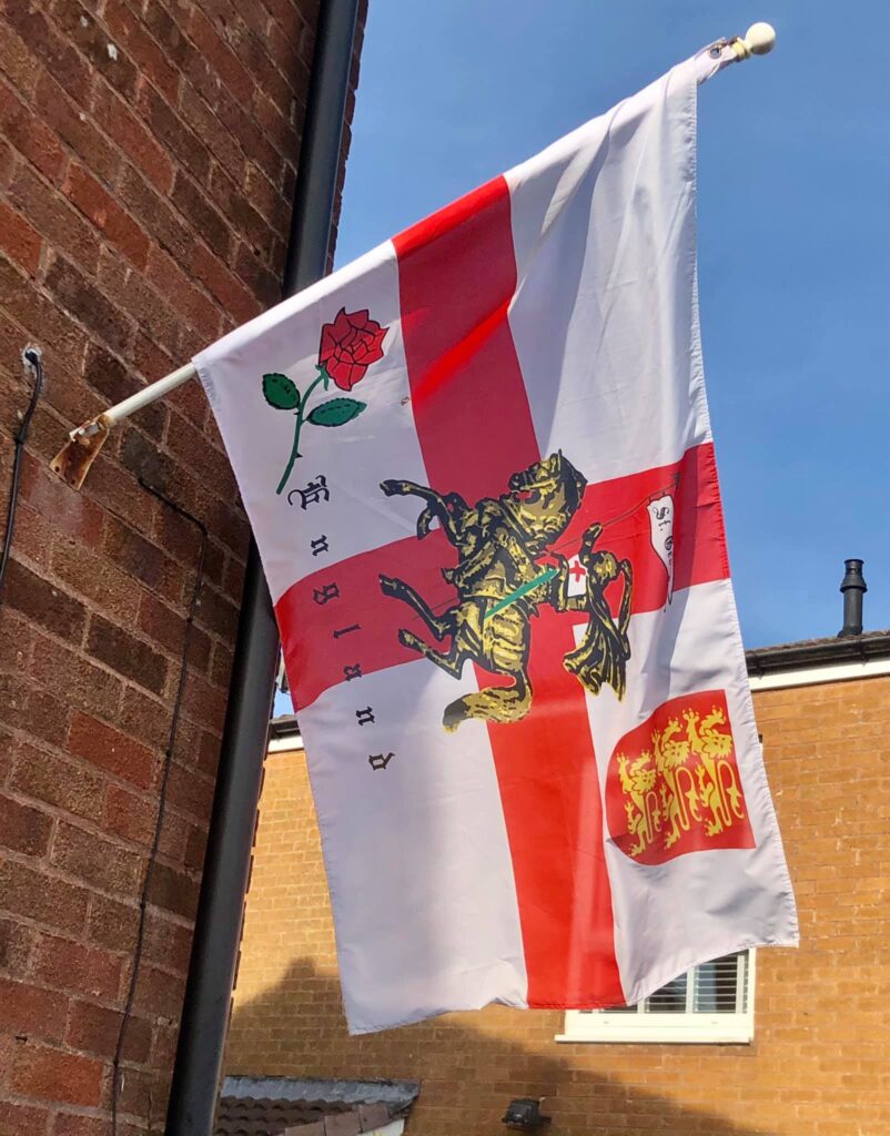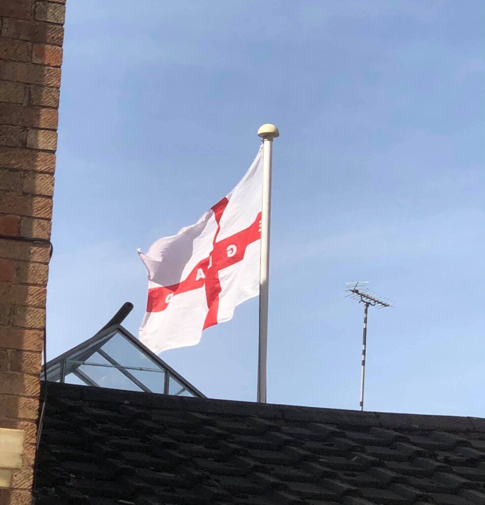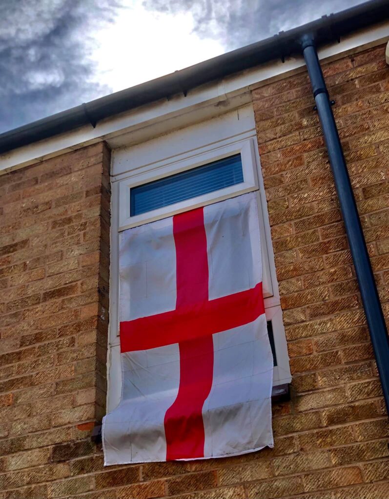 So I’ve sellotaped a flag to my aerial and I’m currently on patrol around Frankley taking photos of all the flags! Don’t be scared folks, be proud of England, fly those flags with pride!